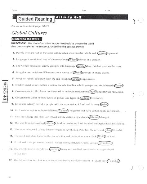 Glencoe World Geography Cultures Answer Key